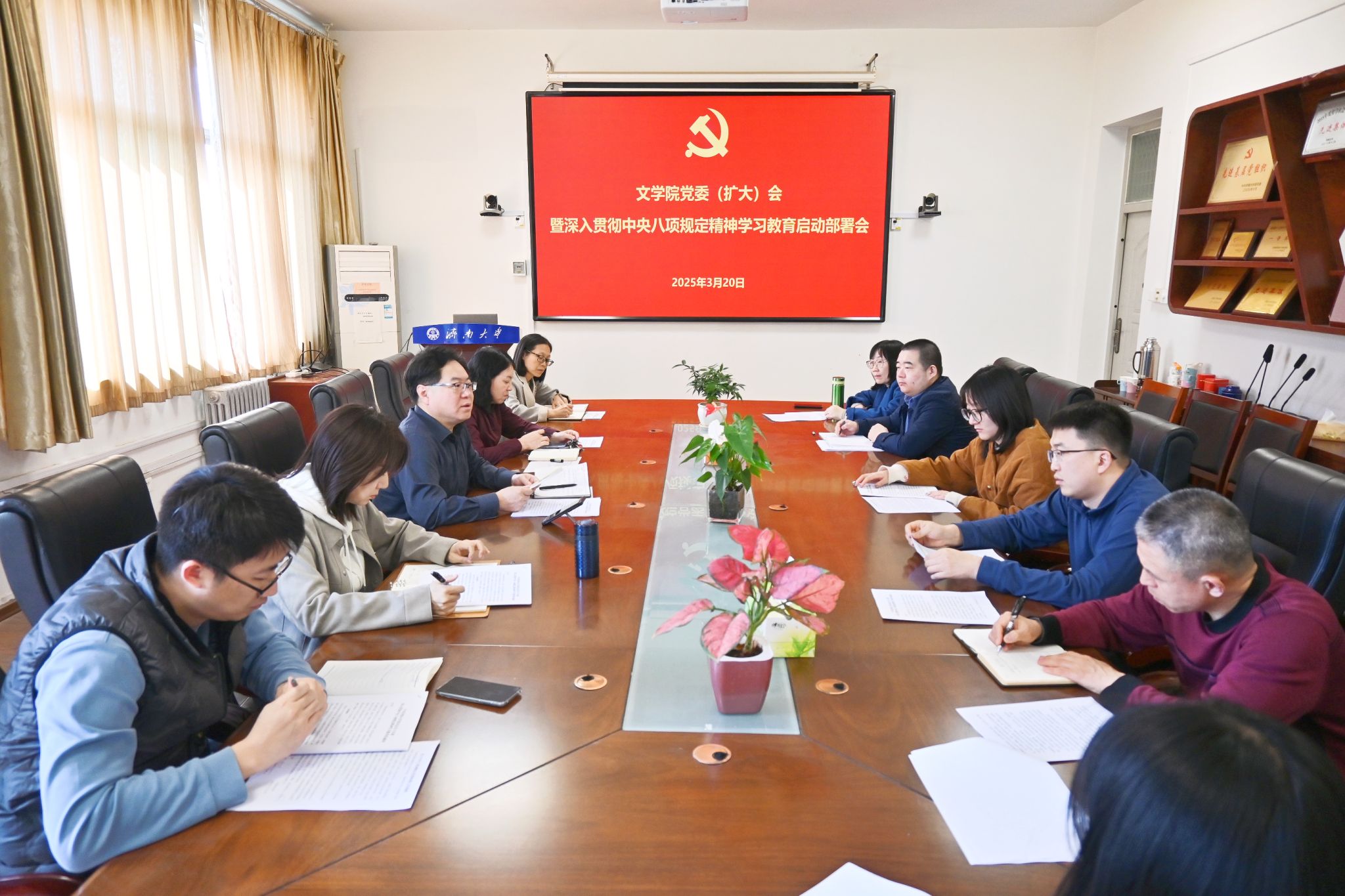 3月20日下午,文学院召开党委(扩大)会议暨深入贯彻中央八项规定精神学习教育动员部署会,研究部署深入贯彻中央八项规定精神学习教育工作。学院党委领导班子成员、各党支部书记参加了会议。会议由学院党委书记董海军主持。