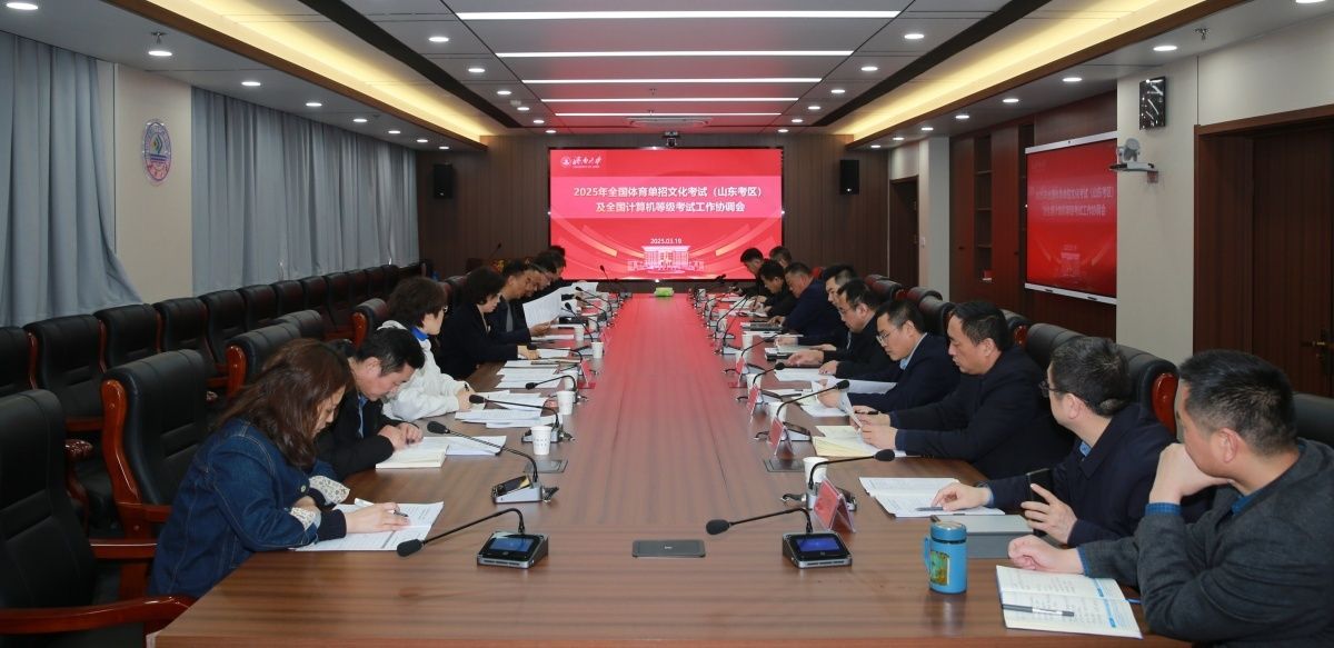 3月19日,学校召开2025年全国高校运动训练、武术与民族传统体育专业招生文化考试(山东考区)(以下简称体育单招文化课考试)和第75次全国计算机等级考试sunbet申搏官方网站考点工作协调会。学校党委常委、副校长王霞出席会议并讲话,相关部门负责人参加会议。会议由教务处处长陈贞翔主持。