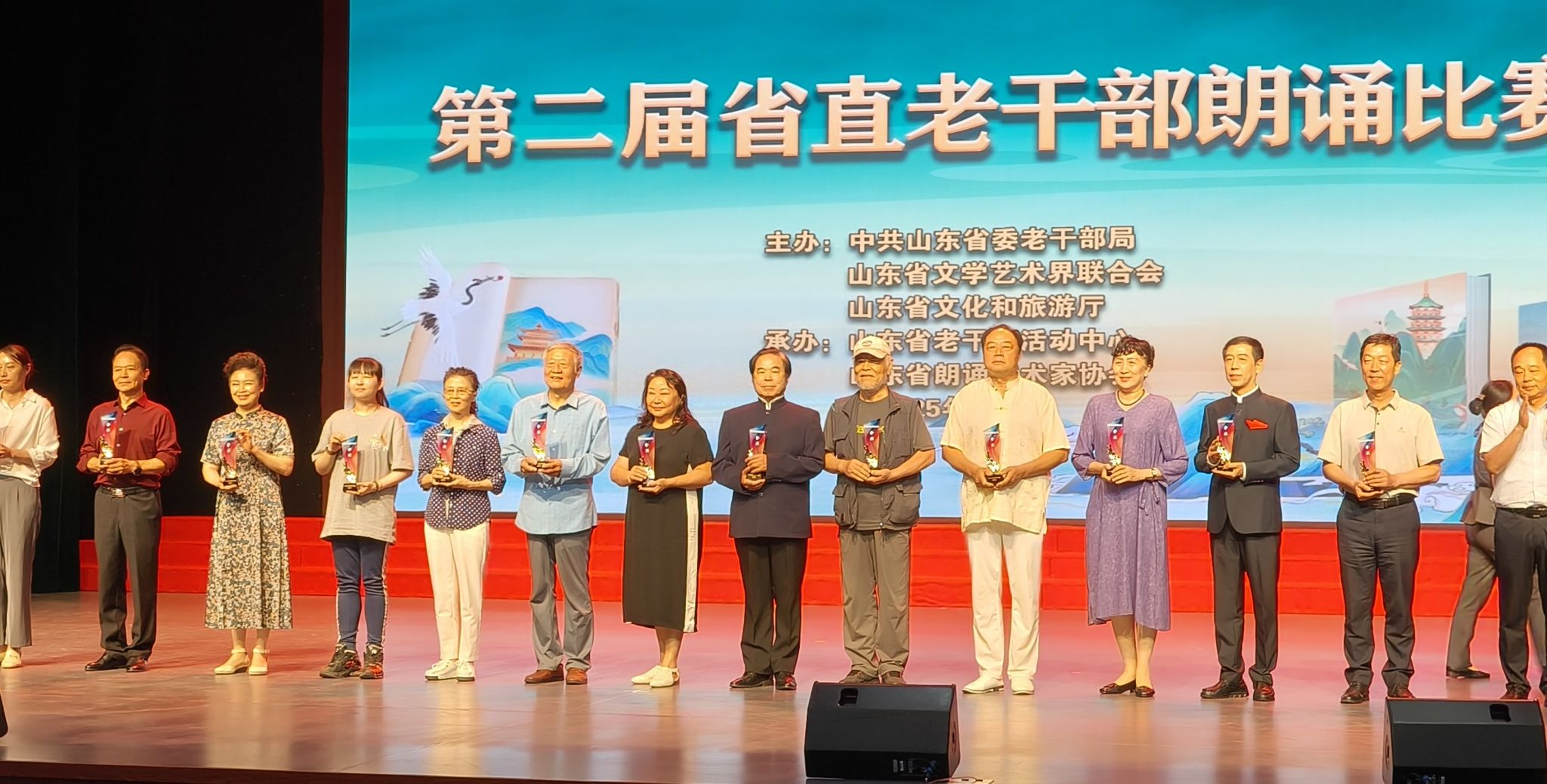 本次比赛由山东省委老干部局主办,汇聚了省直机关及高校等众多朗诵精英。周砾老师以《班佑河边的红军雕塑》为参赛作品,靠着极具感染力的现场表现将文字中蕴藏的磅礴力量与深沉情感演绎得淋漓尽致。当那饱含岁月沉淀又充满生命韧性的声音在赛场回响,令全场观众为之屏息动容。她以声音为桥梁,生动诠释了经典作品的不朽魅力,更以自身风范展示了我校老同志蓬勃的文化活力与不竭的艺术激情。