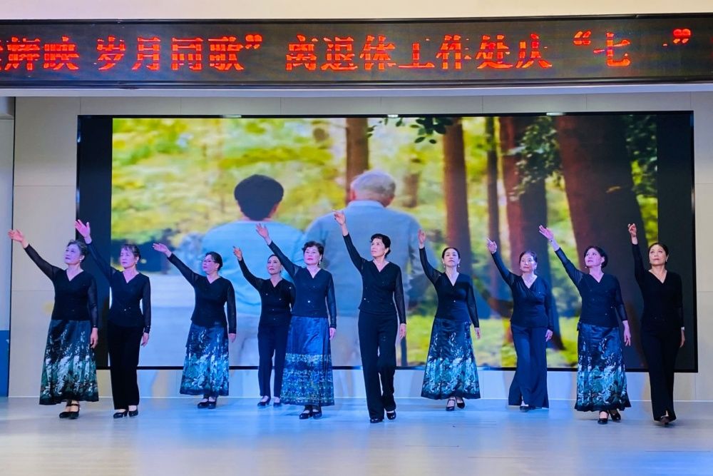 活动现场还穿插了激动人心的电脑抽奖环节,欢呼声、掌声此起彼伏,欢乐氛围弥漫全场。最后,全体人员共同唱响《你是灯塔》,激昂的旋律、嘹亮的歌声久久回荡,唱出永远跟党走的决心,为此次展演活动画上圆满句号。值得一提的是,参与本次展演的老同志中,年龄最大的已达84岁。尽管岁月在他们脸上留下痕迹,但舞台上的他们精神饱满、意气风发,用精湛的表演展现了离退休人员老有所学、老有所乐、老有所为的丰硕成果,彰显了新时代老年人积极向上的精神风采,也为年轻一代树立了传承红色基因、赓续精神血脉的榜样。