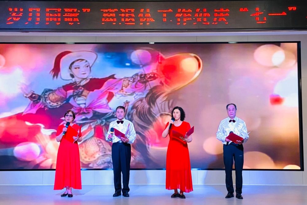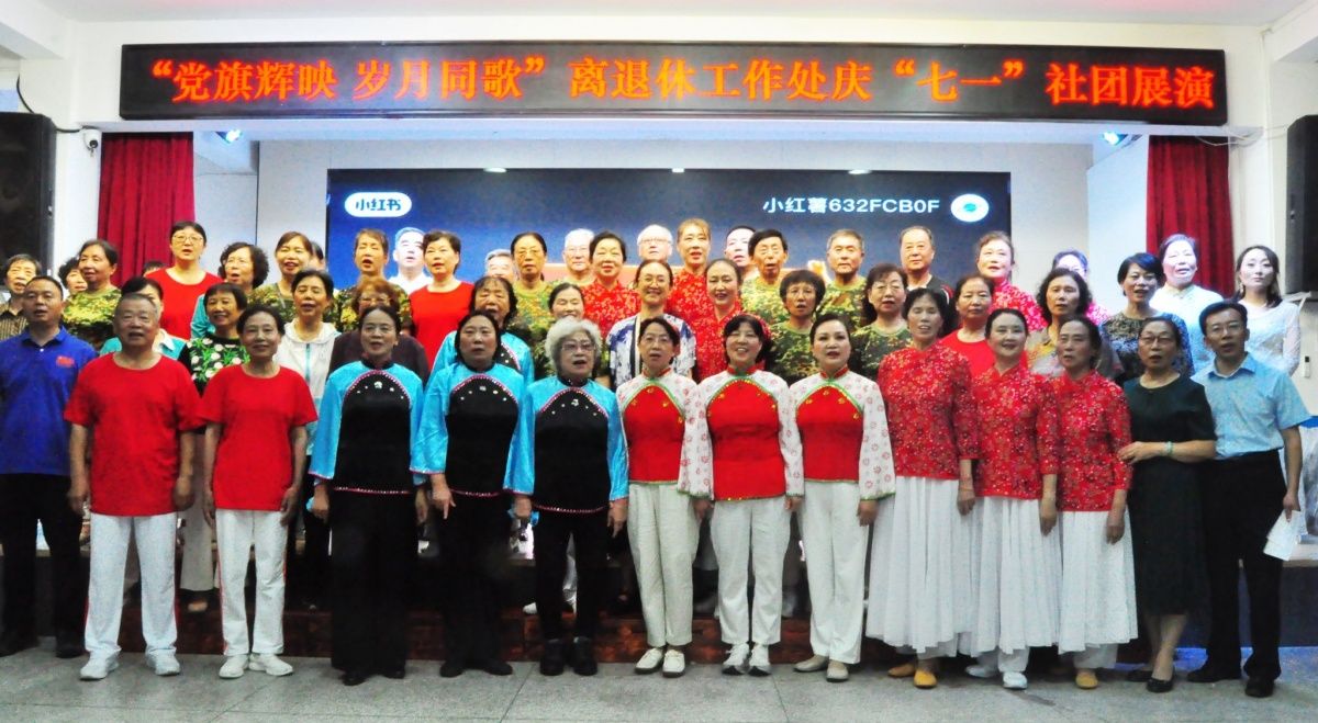 为热烈庆祝中国共产党成立104周年、纪念抗日战争胜利暨世界反法西斯战争胜利80周年,传承红色基因,弘扬爱国精神,7月1日,离退休工作处“党旗辉映 岁月同歌”“庆七一”社团展演活动在多功能厅举行。十个离退休文体社团齐聚一堂,以精彩纷呈的文艺演出和作品展示,深情回顾党的光辉历程,致敬伟大抗战精神,展现出老同志们昂扬向上的精神风貌。