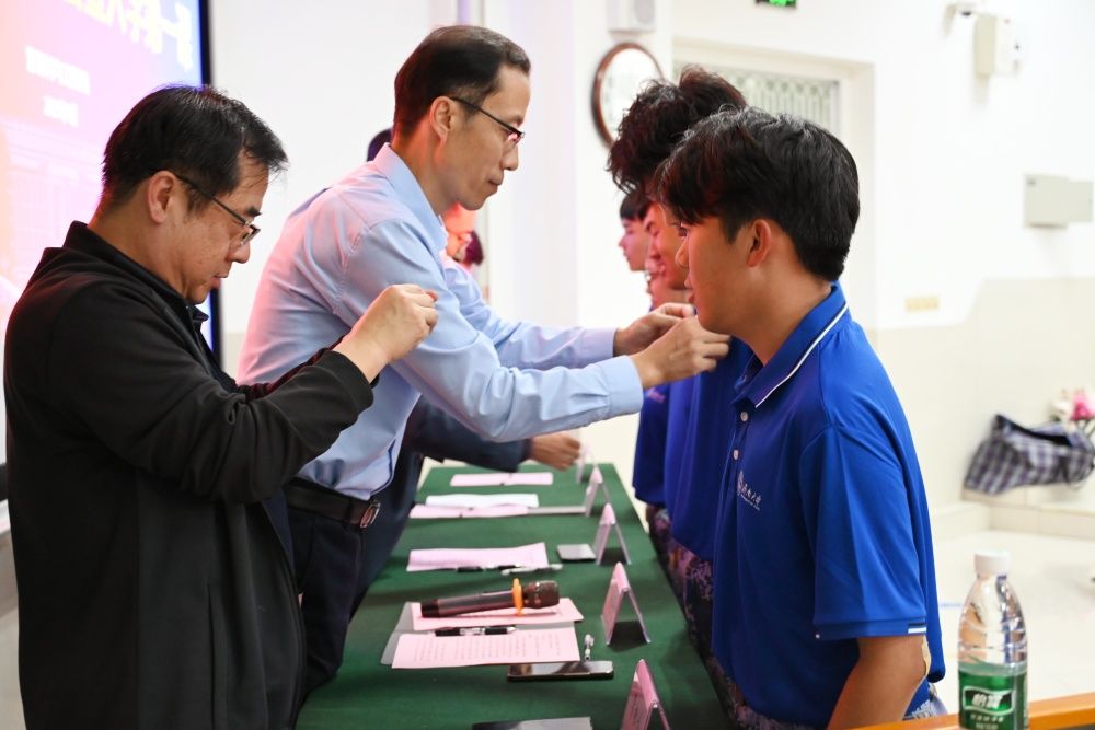 见面会在庄严的国歌声中开始。院长助理常相全对学院各专业情况进行介绍,从学科布局、培养模式、专业优势等方面进行了系统讲解,让新生对学院各专业情况有了直观的认识。在校生代表信管2201班李惠泽结合自身大学学习生活经历,从学业规划、校园活动、能力提升等方面进行经验分享。新生代表应管2502班原浩轩表达了对大学生活的期待与自身的规划愿景,展现出新生群体的蓬勃朝气。活动中,学院领导为新生代表佩戴校徽。