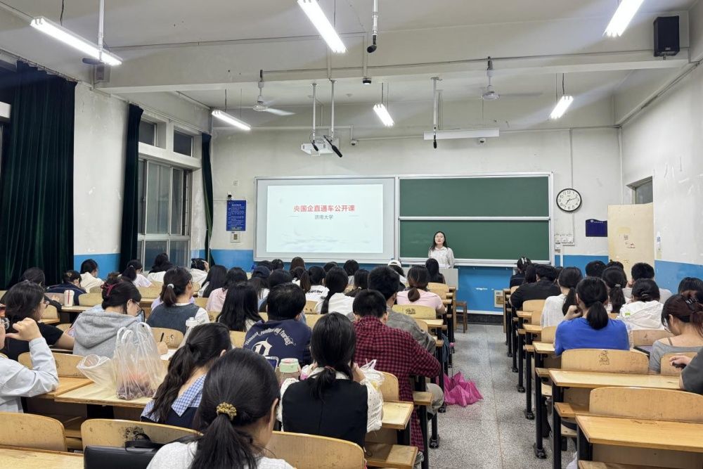 活动中,主讲教师结合26届已发布的央国企秋招岗位信息,对招聘关键要点进行了深入解读,系统讲解了中央企业和国有企业的招聘流程与特点,重点涵盖简历优化技巧、笔试备考策略及面试应对方法等内容。讲解注重实用性与可操作性,语言通俗、案例丰富,紧密贴合学生实际求职场景。现场互动氛围良好,学生主动参与度高。