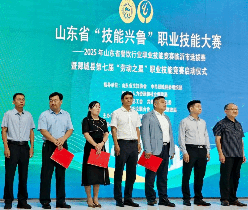 在山东省“技能兴鲁”职业技能大赛——2025年山东省行业职业技能临沂市选拔赛上,文化和旅游学院党委书记孟德洋出席启动仪式,烹饪与营养教育专业汤卫东、胡建国两位教师担任大赛评委。