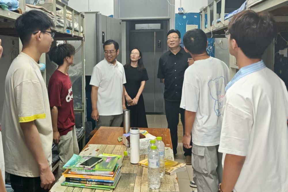 为传递学院人文关怀,帮助2025级新生更好地适应大学新环境,9月10日,学院党委书记李超,院长谢群,党委副书记、副院长李健慧,副院长王嘉斌及全体辅导员深入新生宿舍开展走访慰问活动,实地了解新生的入学适应情况,并围绕校园生活、学业规划等方面与同学们亲切交流、暖心指导。
