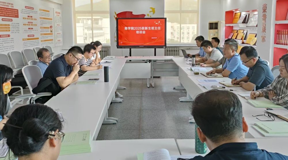 为进一步提升新生班主任的业务能力和育人实效,积极打造高质量、最温馨的2025级迎新季,9月9日下午,商学院2025级新生班主任工作交流培训会在经管楼605会议室召开。学院党委书记彭亚宁、2025级新生班主任及辅导员共同参会。会议由学院党委副书记、副院长袁海占主持。