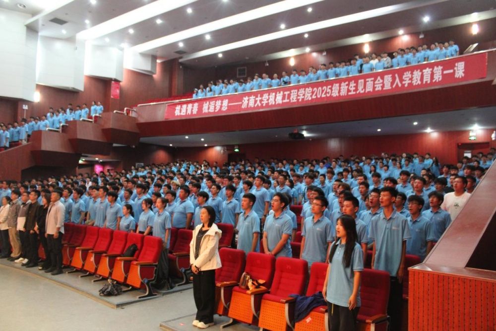 随着主持人宣布会议开始,全场师生肃立,齐唱中华人民共和国国歌。激昂的旋律中,新生们目光坚定、歌声嘹亮,展现出新时代青年昂扬向上的精神风貌。