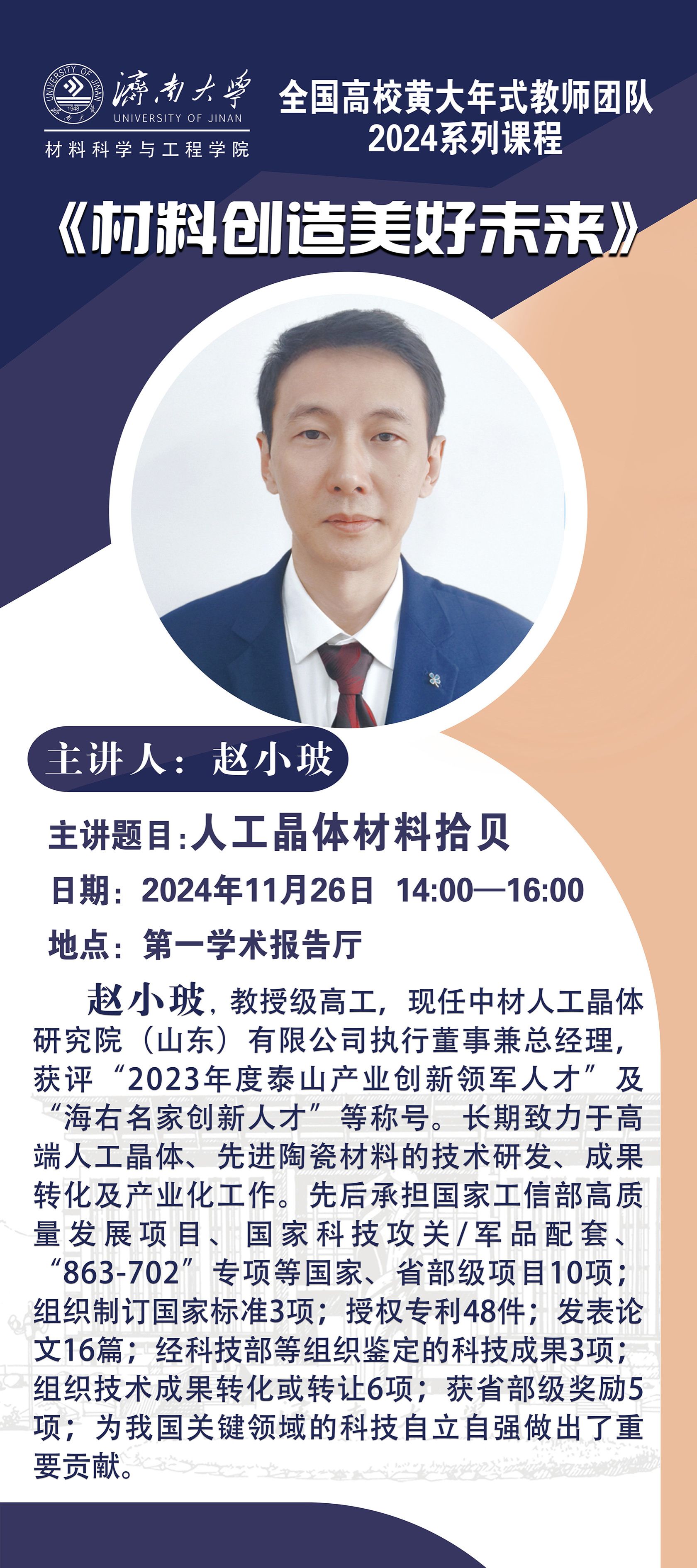 学术海报:全国黄大年式教师团队2024系列课程《材料创造美好未来》第六讲——人工晶体材料拾贝