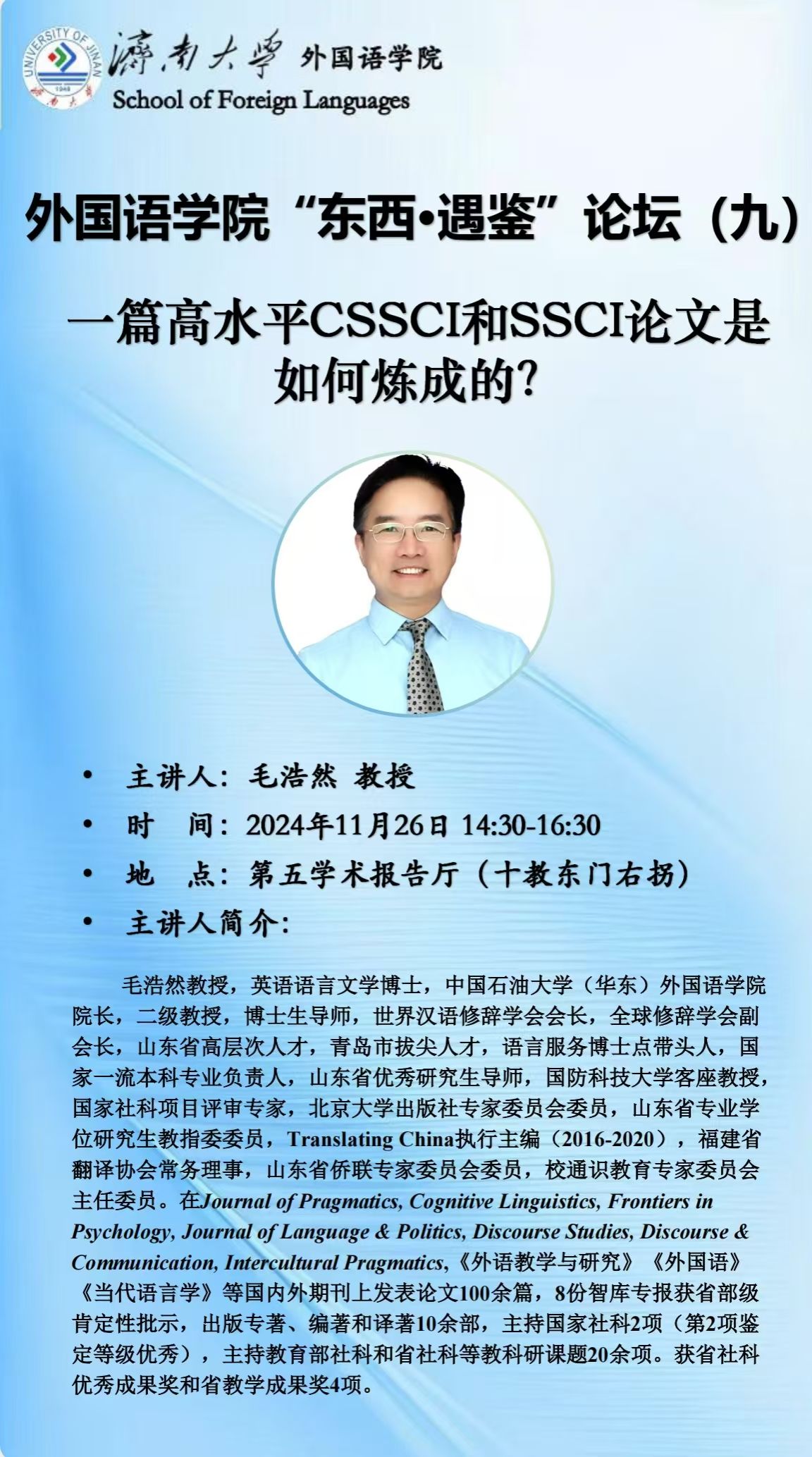 学术海报: 外国语学院“东西·遇鉴”论坛——一篇高水平CSSCI和SSCI论文是如何炼成的?