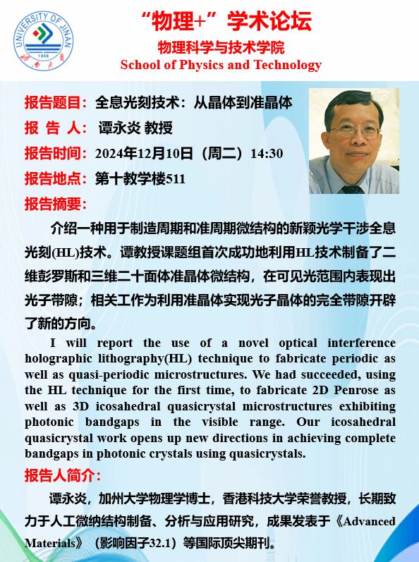 “物理+”学术论坛:全息光刻技术-从晶体到准晶体