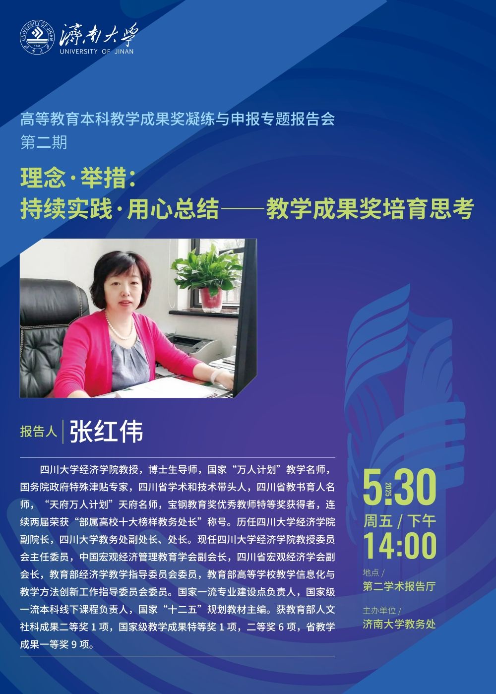 高等教育本科教学成果奖凝练与申报专题报告会(第二期)预告:理念·举措:持续实践·用心总结——教学成果奖培育思考