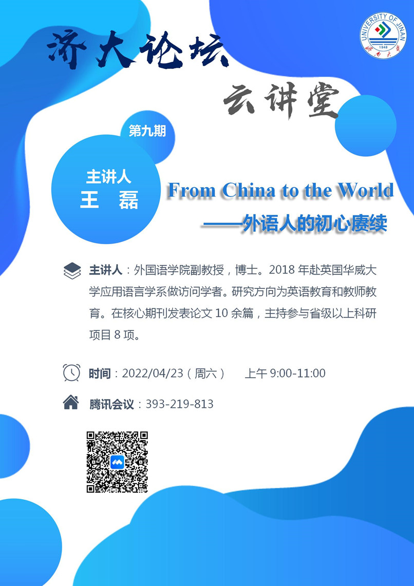 sunbet申搏论坛“云讲堂”第九期:From China to the World ——外语人的初心赓续